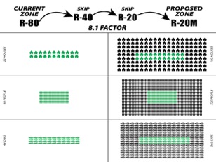 It is clear from the illustration that the number of cars, people and homes which will be embedded into our neighborhood by moving from the current R-80 zoning.